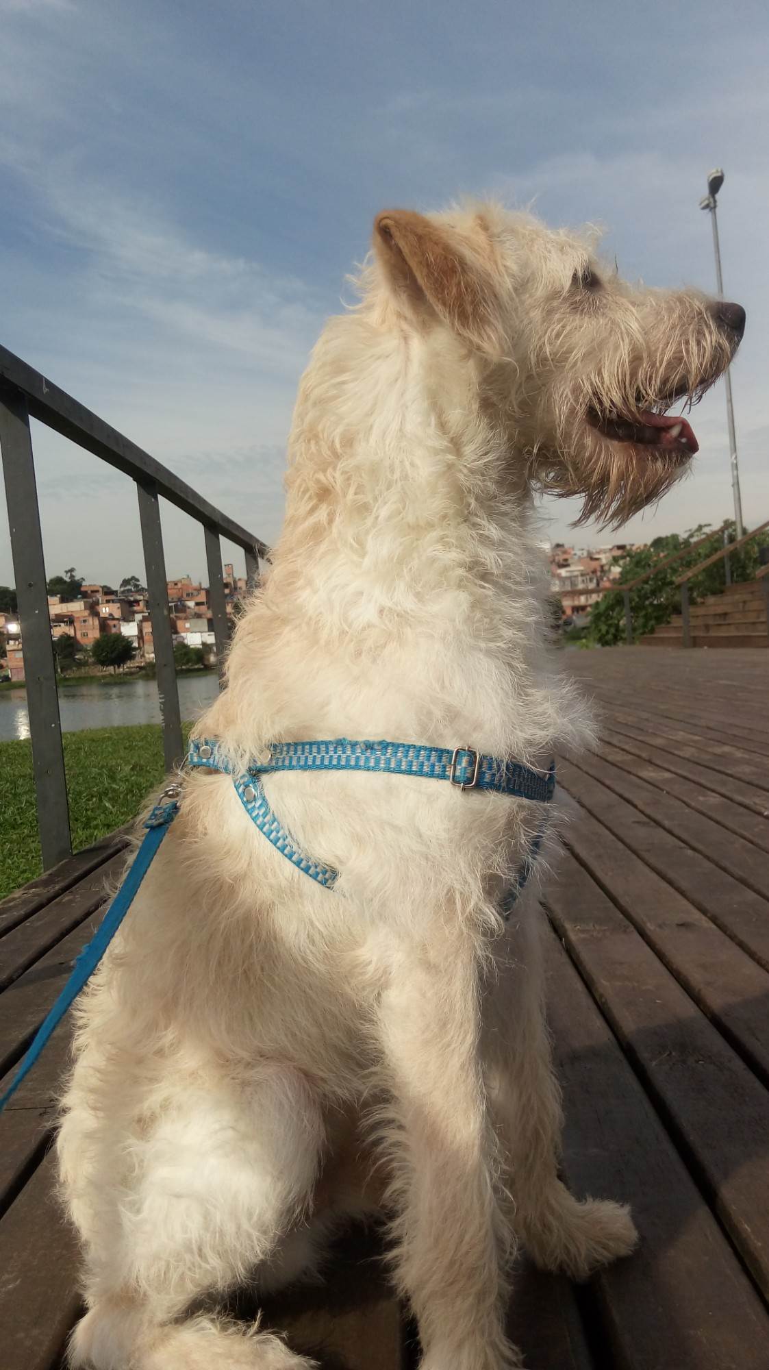 Foi visto a última vez pela manhã, está sem coleira e provavelmente sujo.